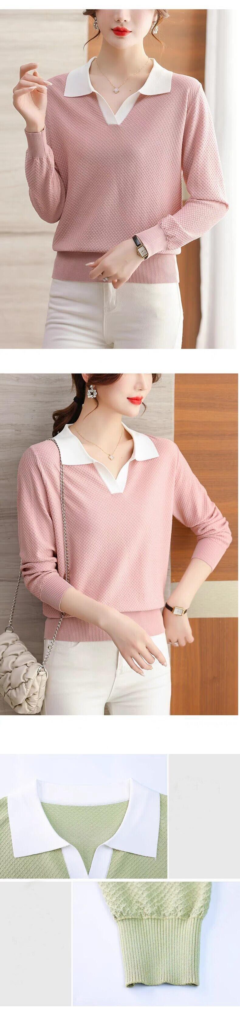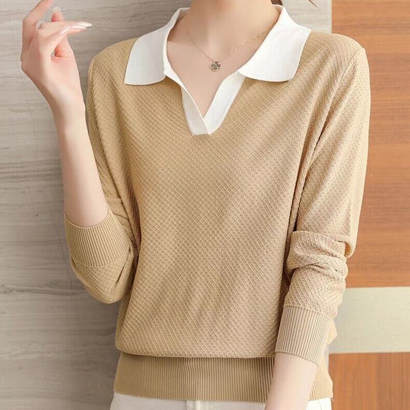 ターンダウン襟ルーズニットセーター秋冬服長袖プルオーバートップスプル ロング オータム 秋物 ウィンター 冬物