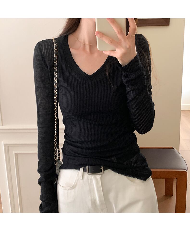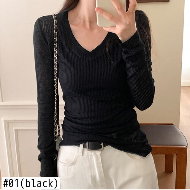 基本的薄い Tシャツセクシースリムトップス長袖 V ネック Tシャツ春秋スタイル Tシャツ ロング スプリング 春物 オータム 秋物 Vネック