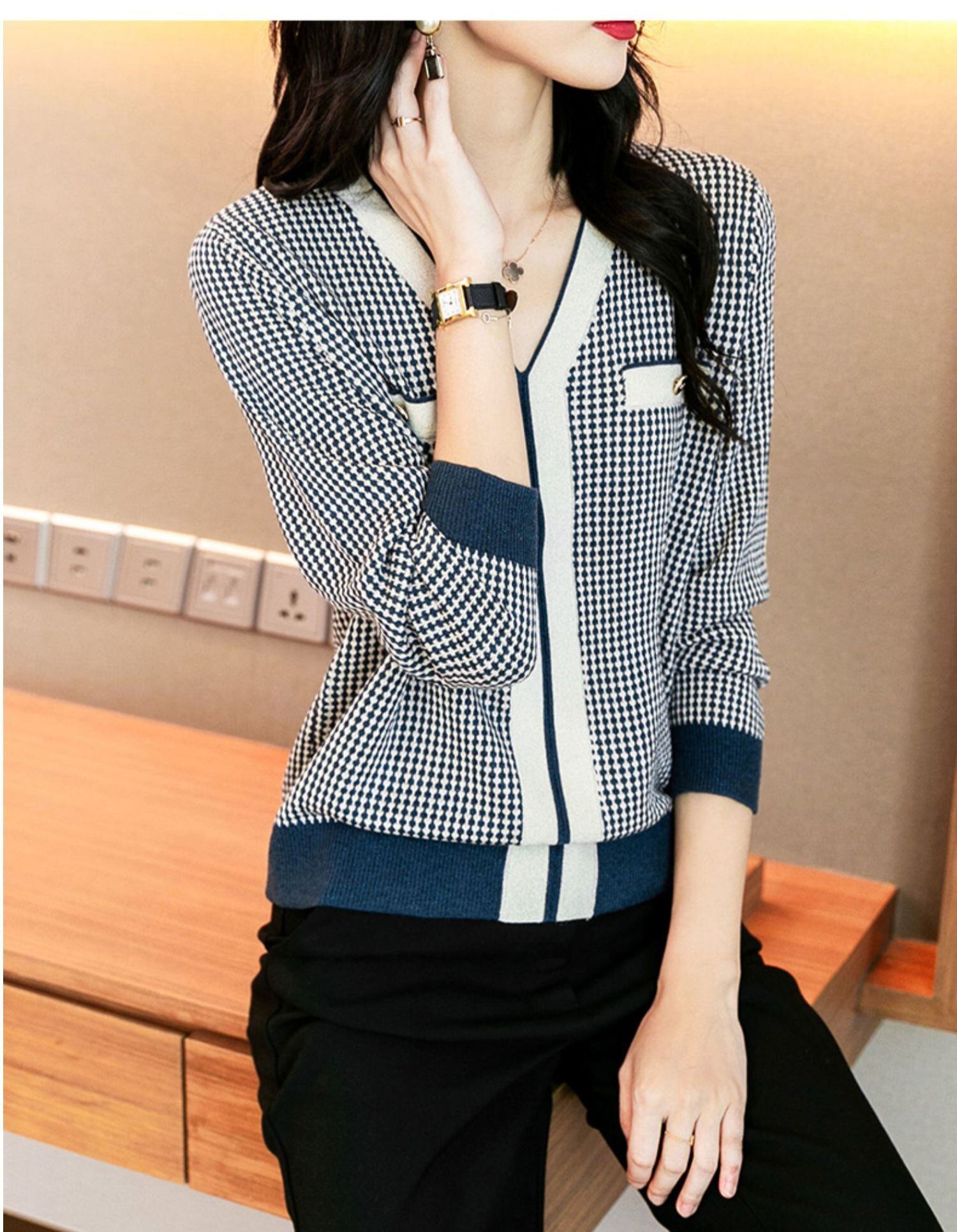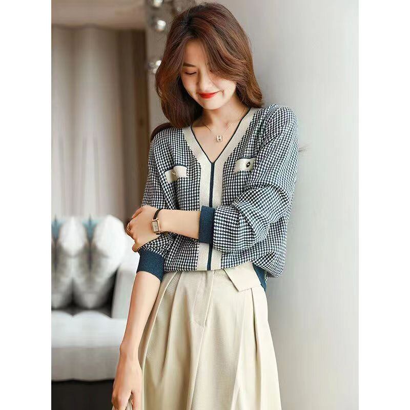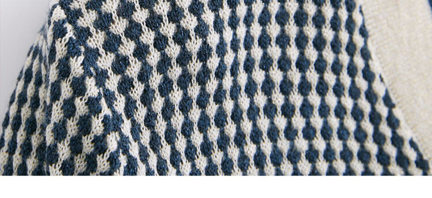 V ネックセーター厚く暖かいプルオーバーニットトップス秋冬プルチェック柄長袖セーター ロング オータム 秋物 ウィンター 冬物