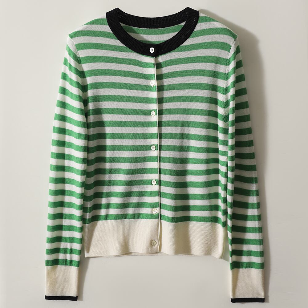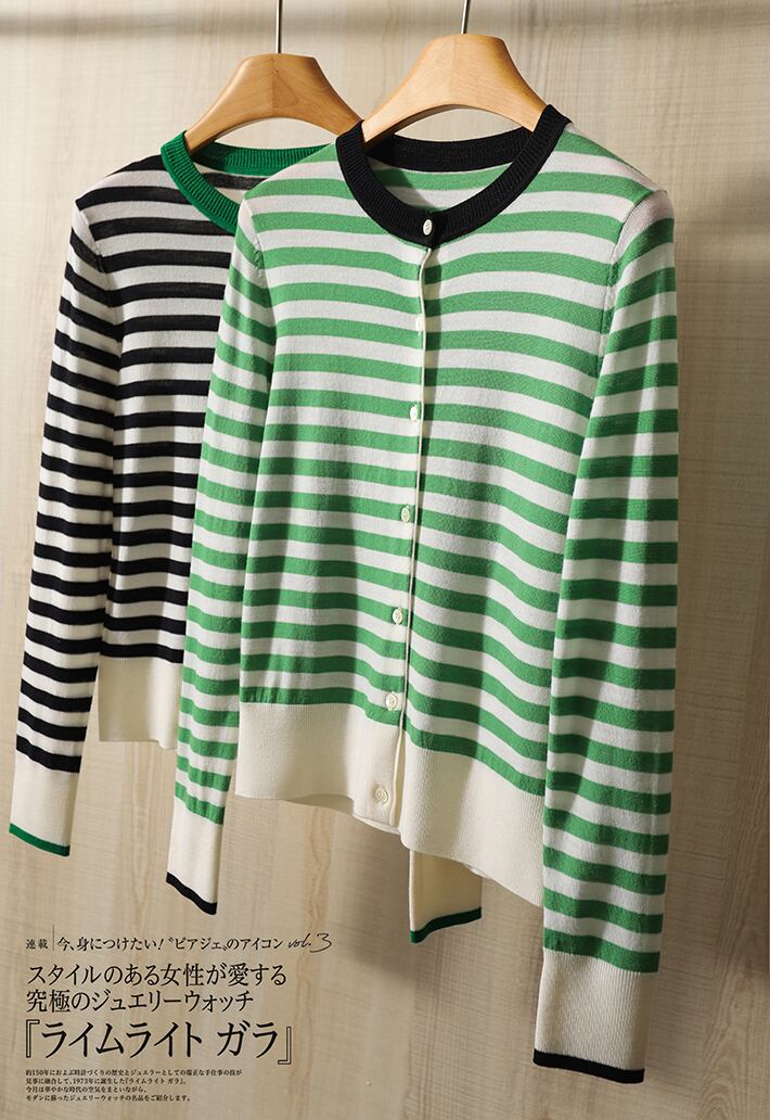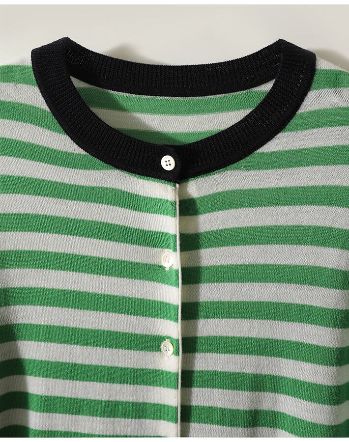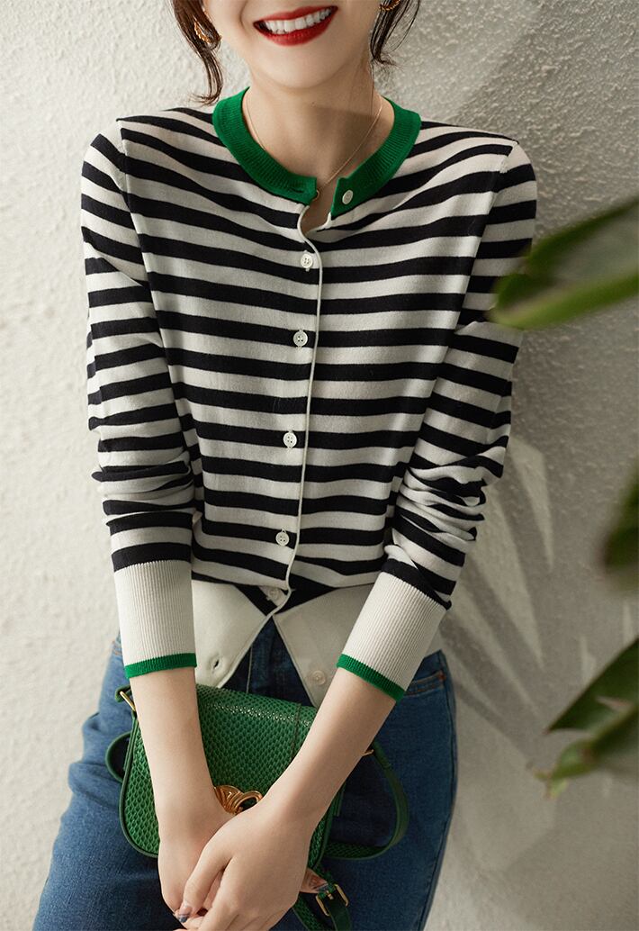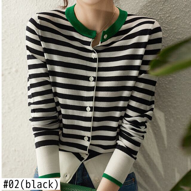 秋冬服ストライプニットカーディガン長袖セーター O ネックスリムトップスニットウェア ロング オータム 秋物 ウィンター 冬物 Oネック
