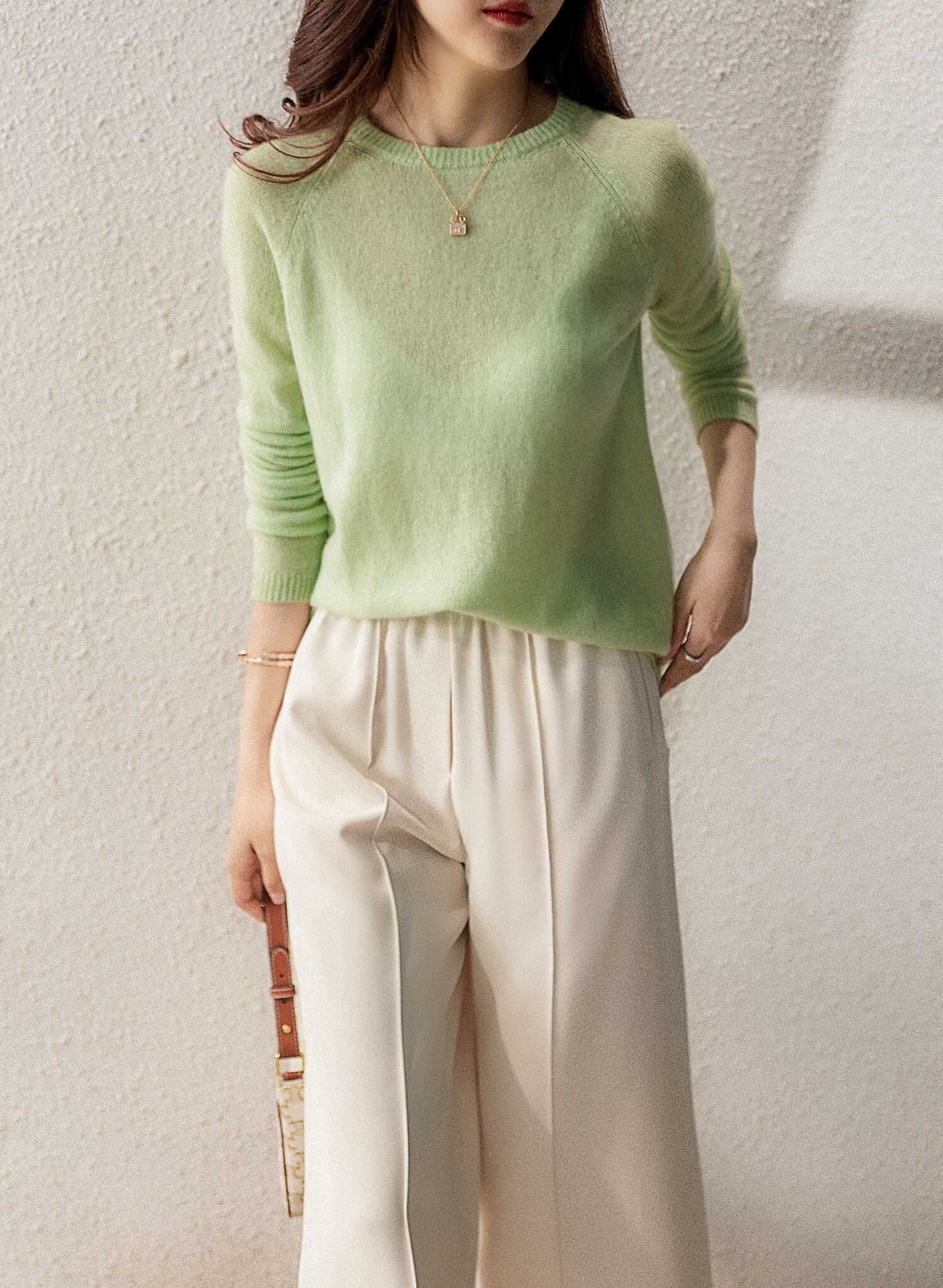 セーターデモーダ秋冬服薄いニットトップス O ネック長袖プルオーバーセーター ロング オータム 秋物 ウィンター 冬物 Oネック