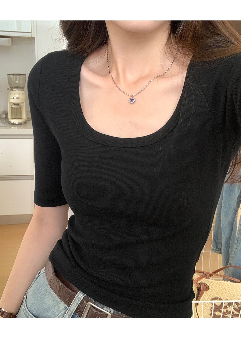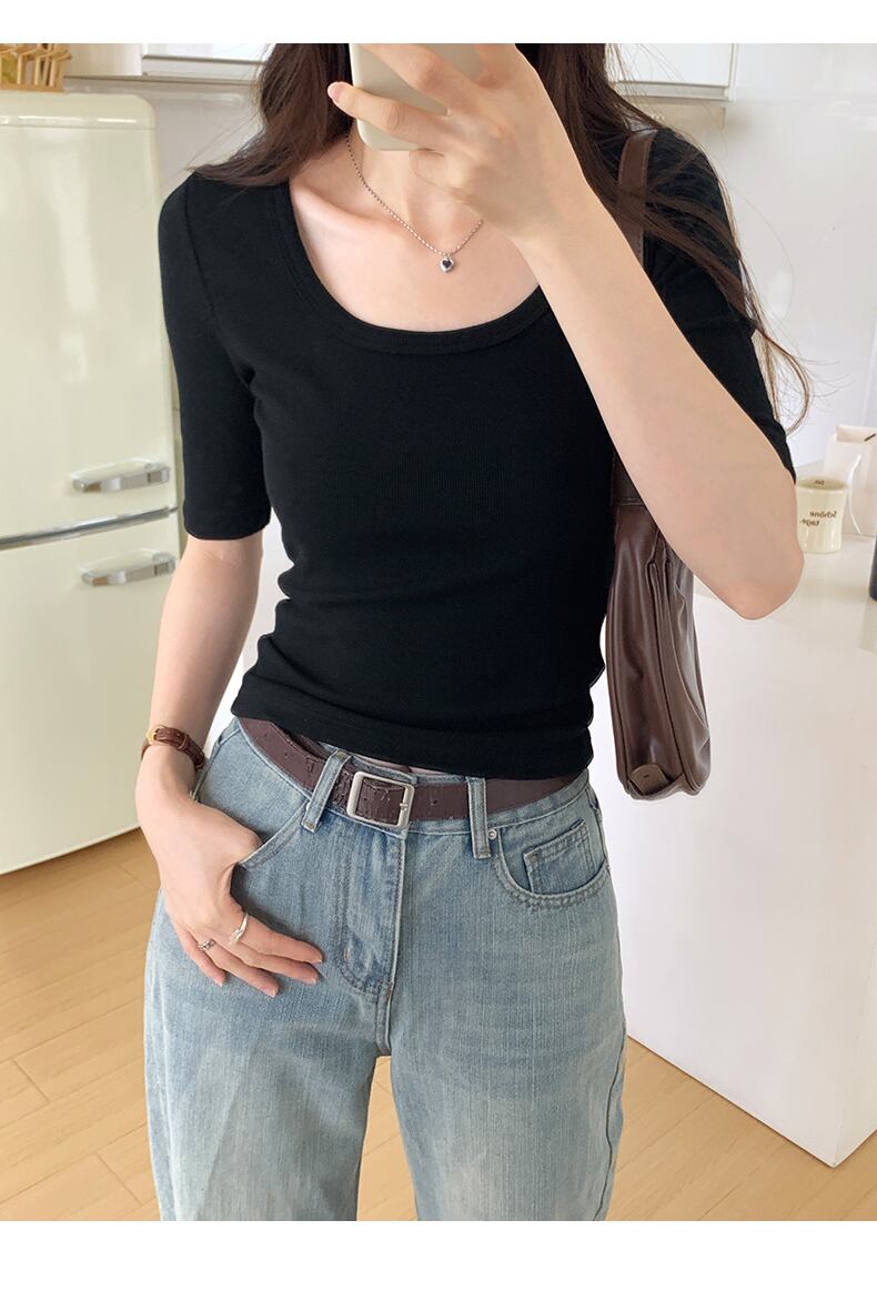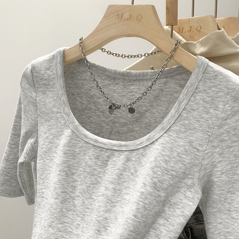 コットン Tシャツ春夏 Tシャツレディーススキニーベーシック O ネック半袖 Tシャツ ショート ハーフスリーブ スプリング 春物 サマー 夏物 Oネック