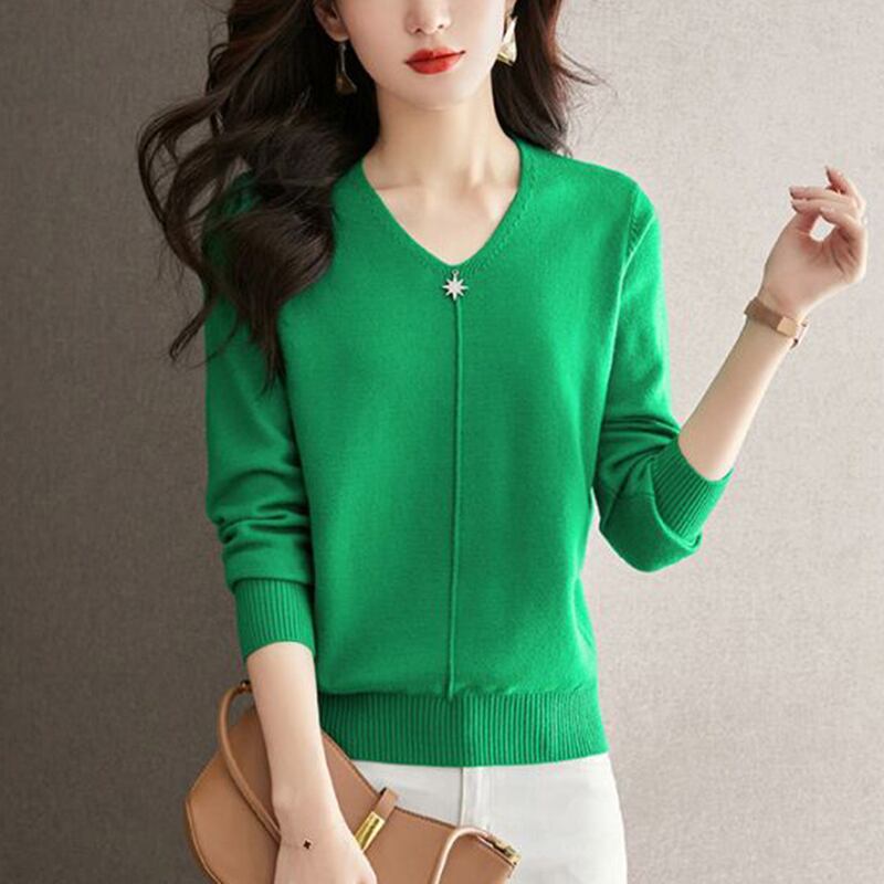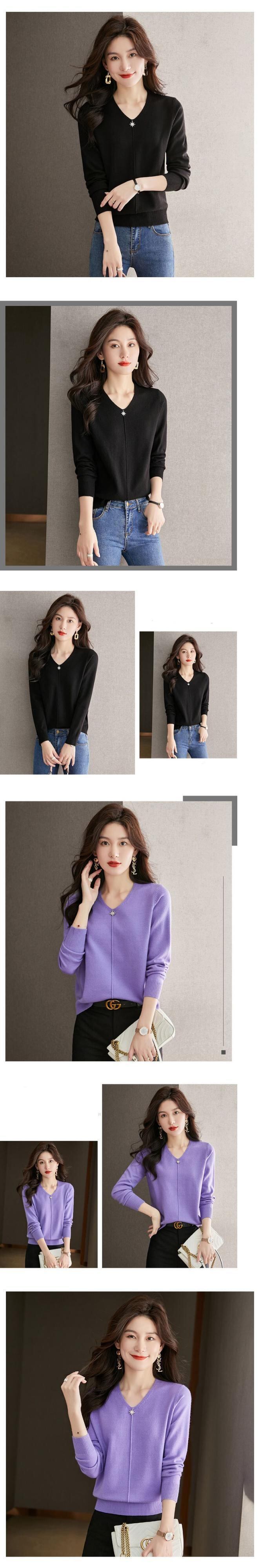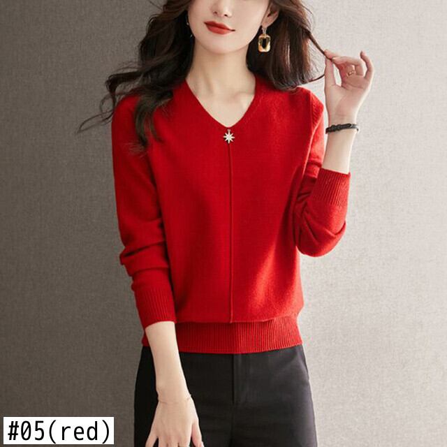 プルオーバー V ネックセーター秋冬レディースニットトップス長袖黒ニット ロング ブラック オータム 秋物 ウィンター 冬物 Vネック
