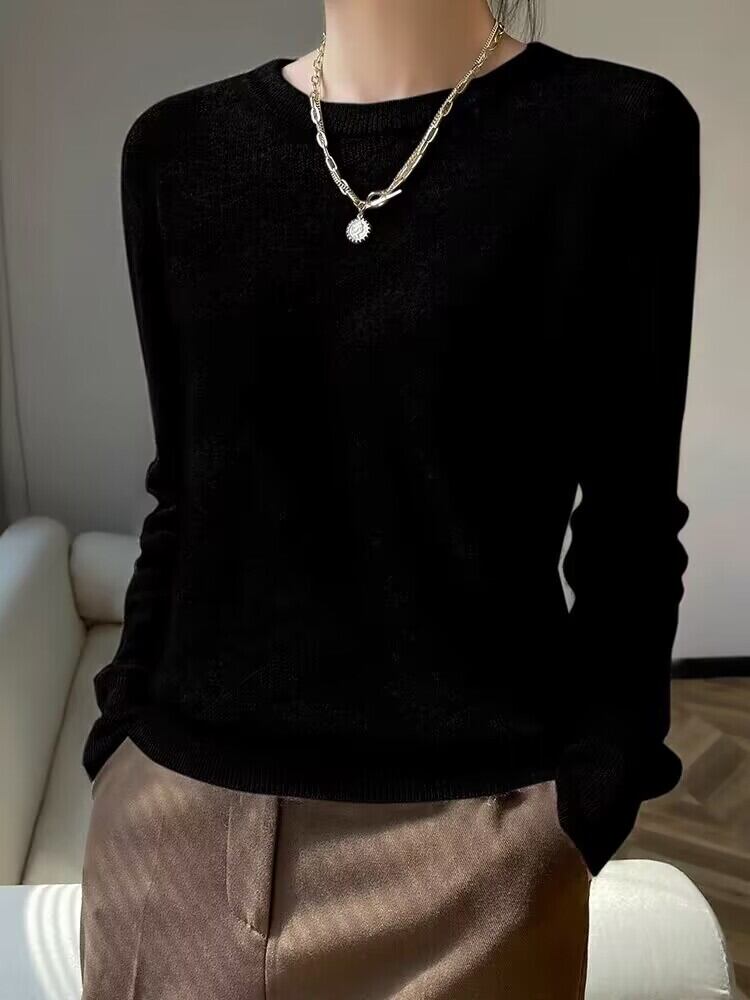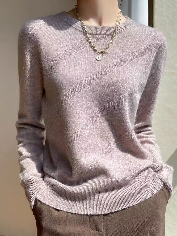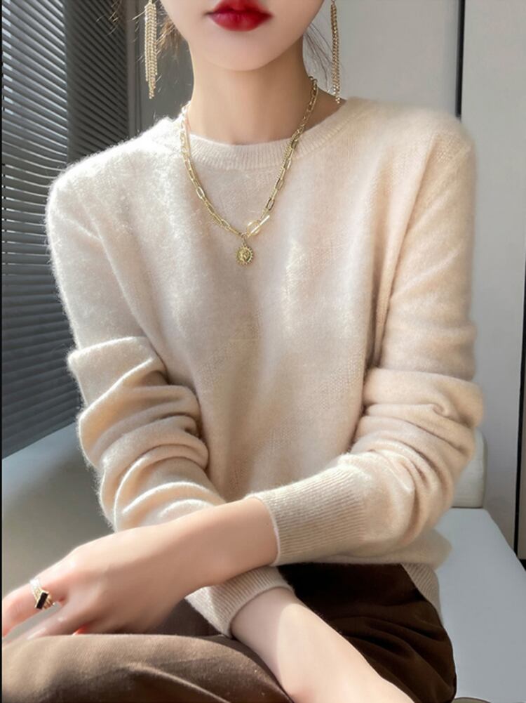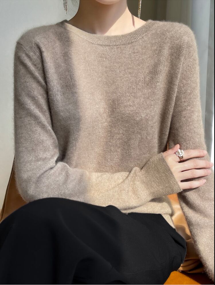 秋冬服長袖トップスソリッドベーシックピンクプルオーバー O ネックニットセーターセーター ロング オータム 秋物 ウィンター 冬物 Oネック ソリッドカラー