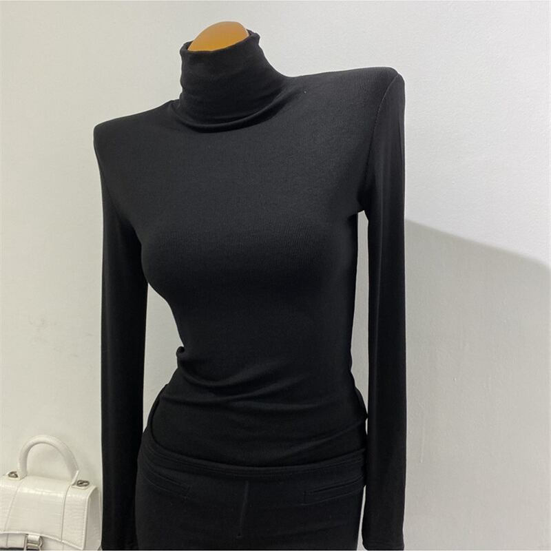 秋冬服タートルネックコットン Tシャツスタイルスリムトップスベーシック Tシャツ Roupas オータム 秋物 ウィンター 冬物 ソリッドカラー