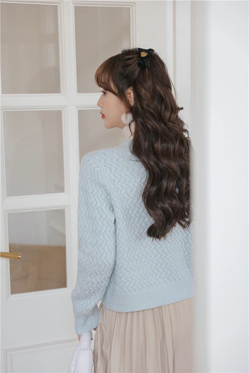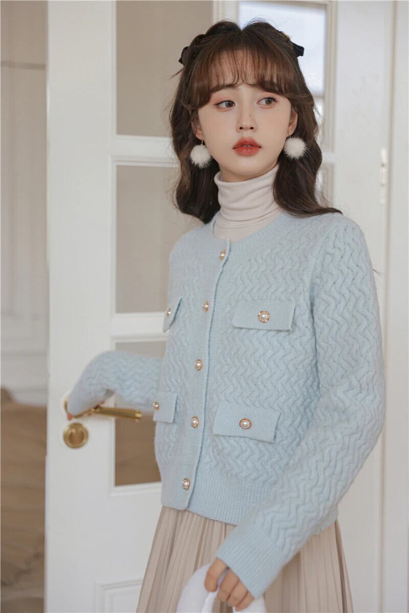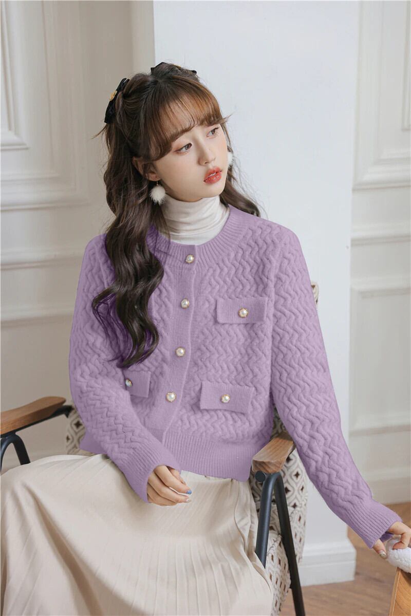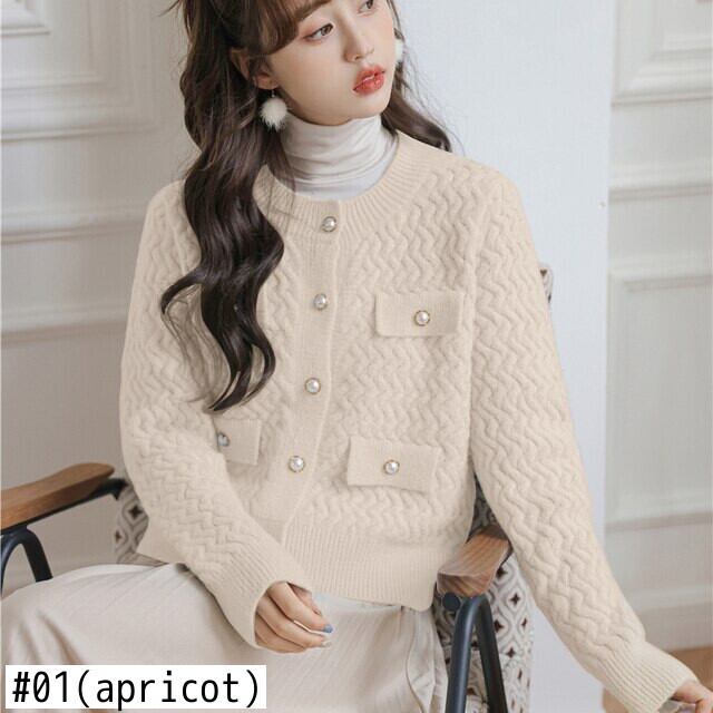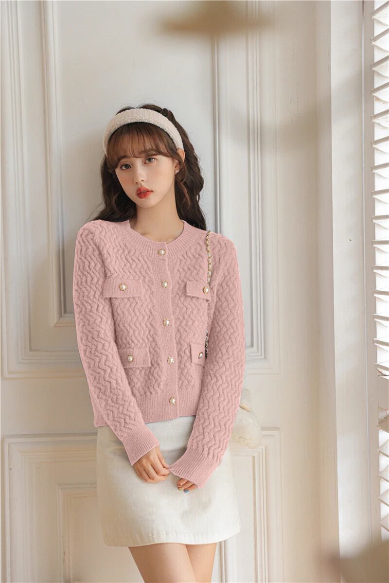 O ネックカーディガンセーター長袖ニットクロップトップスピンク生き抜く秋冬 ロング オータム 秋物 ウィンター 冬物