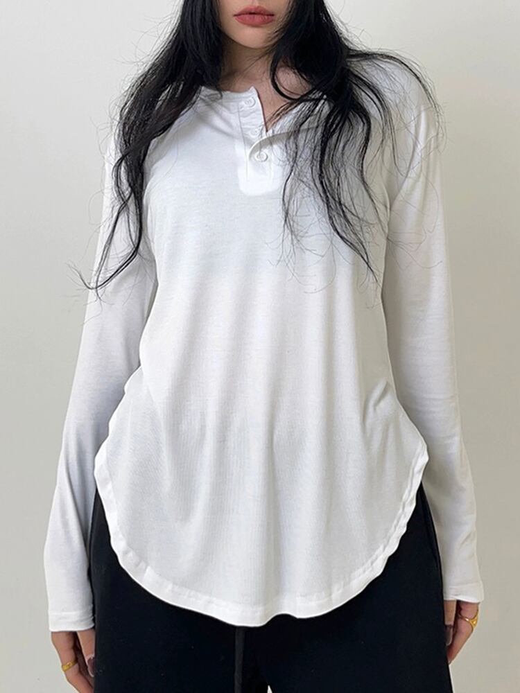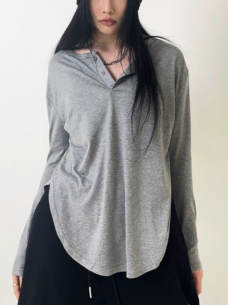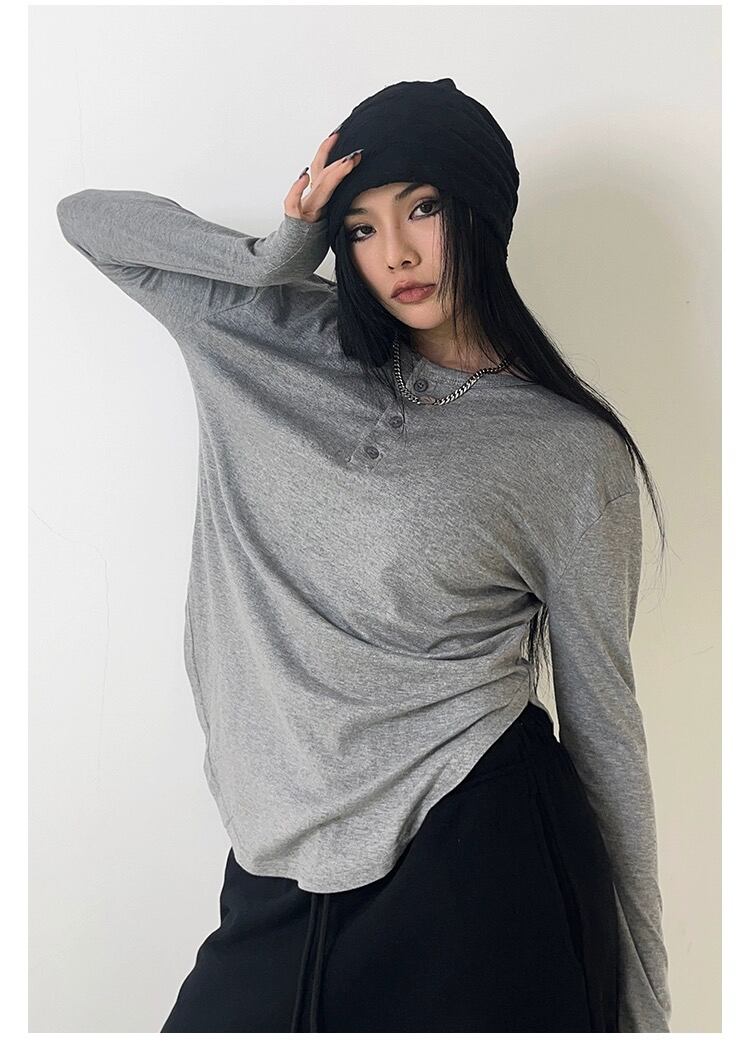 春秋服基本的薄い Tシャツ長袖ルーズ O ネック Tシャツレディースストリート Tシャツ ロング スプリング 春物 オータム 秋物 Oネック