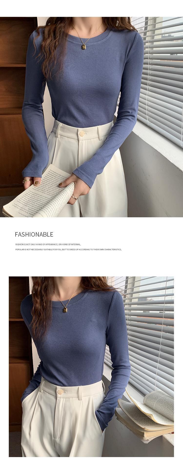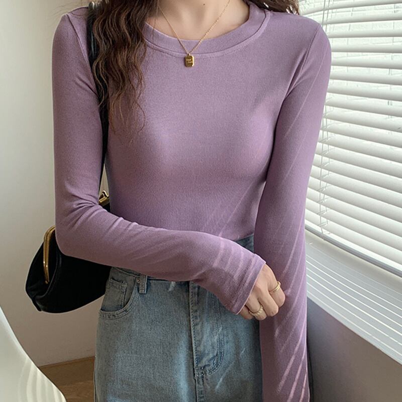 Camisetas 春秋トップス長袖 Tシャツスリム O ネックベーシック Tシャツ ロング スプリング 春物 オータム 秋物 Oネック ソリッドカラー