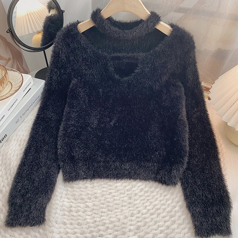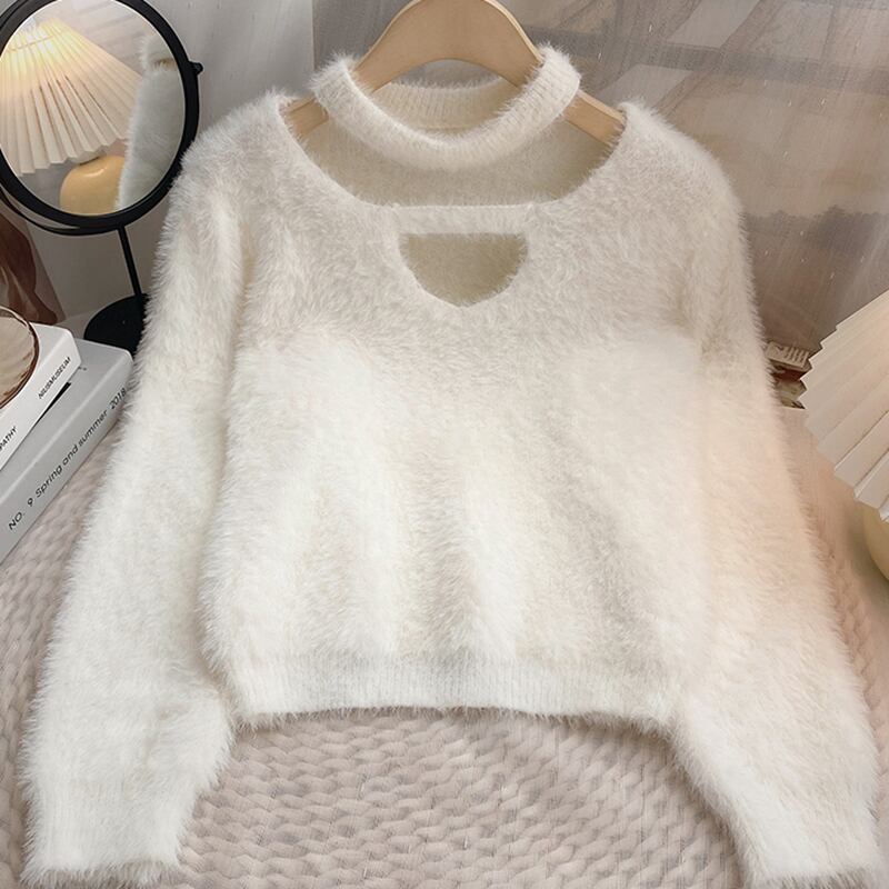 中空アウトピンクセーター長袖プルオーバーソフトニットクロップトップス秋冬服 ロング オータム 秋物 ウィンター 冬物