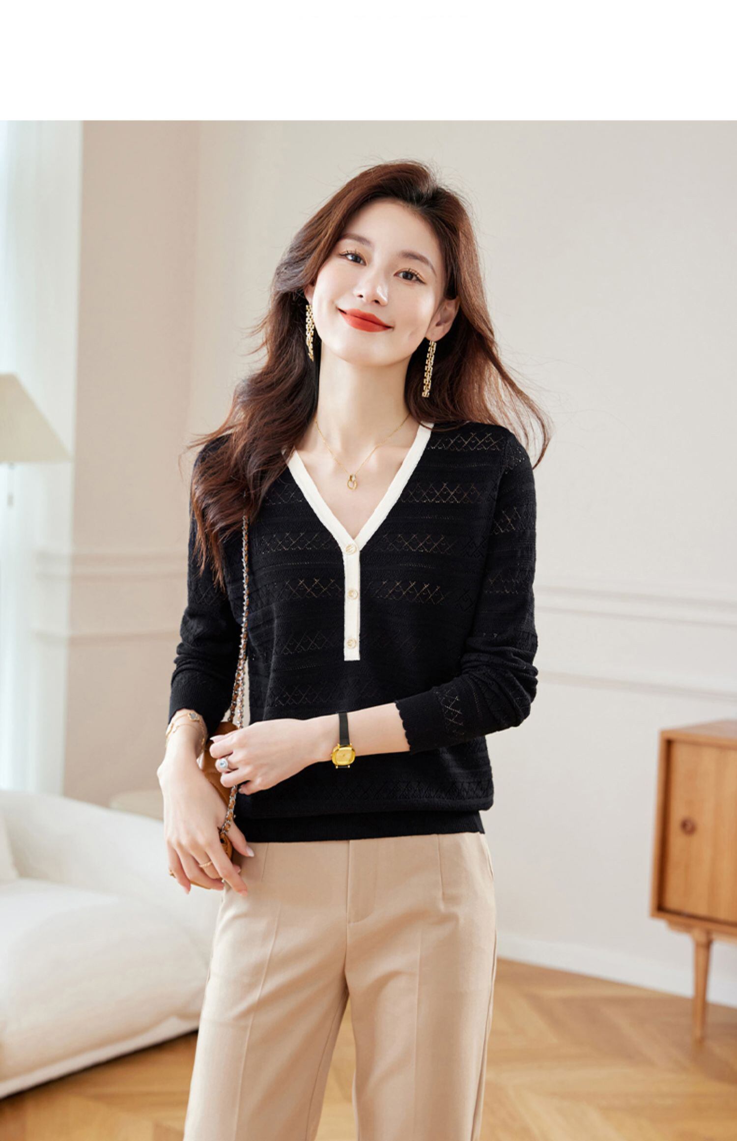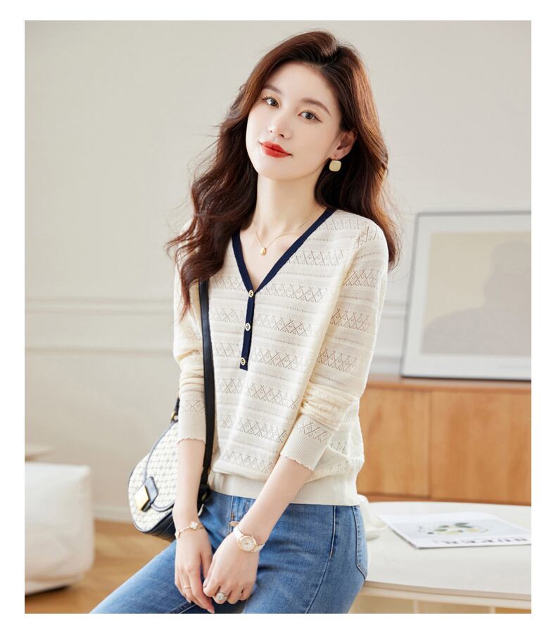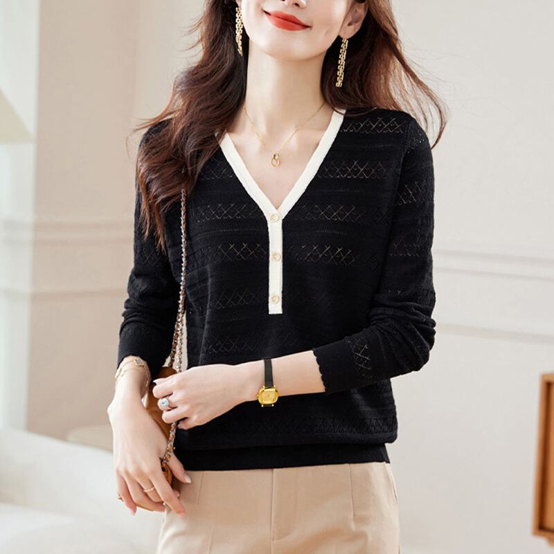 秋冬服 V ネックニット薄手ルーズセーター V ネック長袖中空プルオーバートップス ロング オータム 秋物 ウィンター 冬物 Vネック