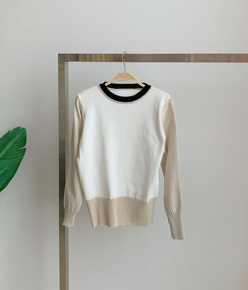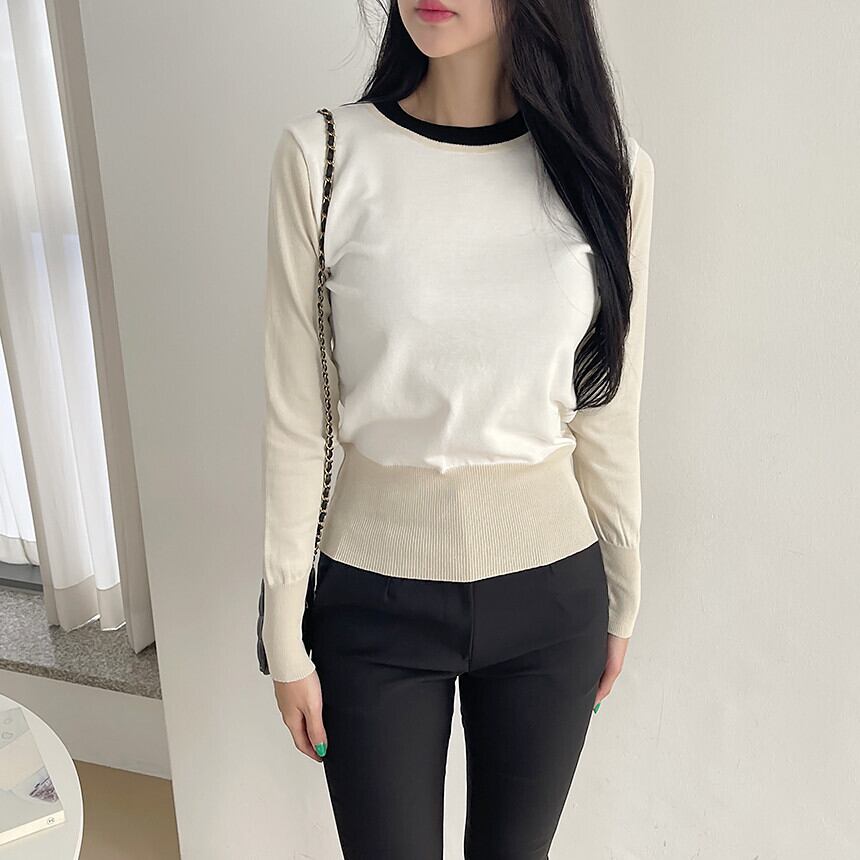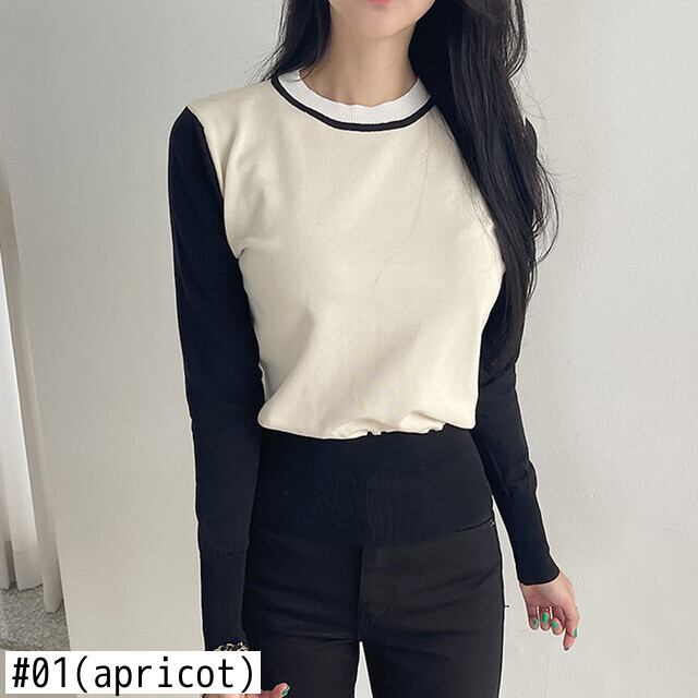 秋冬服スタイルコントラストカラーニットクロップトップススリム長袖 O ネックプルオーバーセーター ロング オータム 秋物 ウィンター 冬物 Oネック