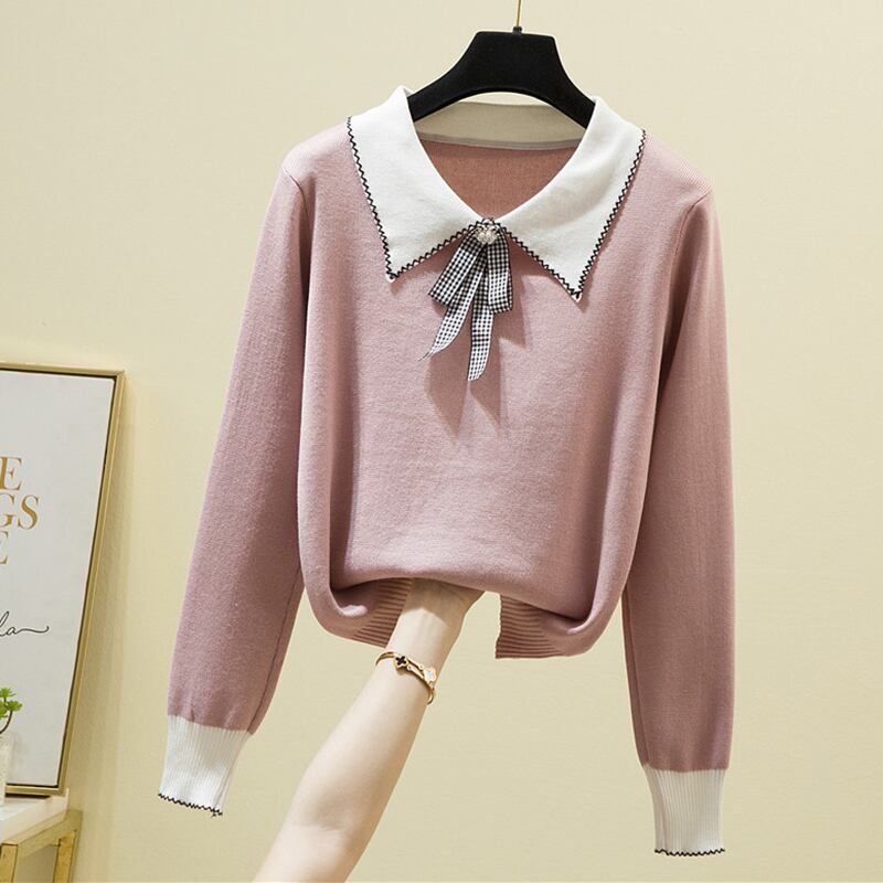 セーターズデモーダピンクセーター秋冬ルーズニットトップス長袖プルオーバー暖かいセーター ロング オータム 秋物 ウィンター 冬物