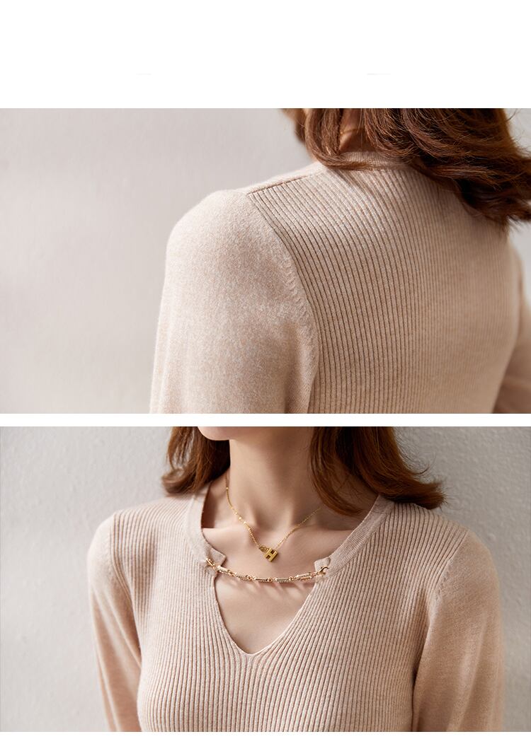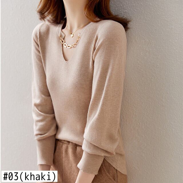 長袖 V ネックセータープルオーバーニットトップス秋冬スリム黒セータージャンパー ロング ブラック オータム 秋物 ウィンター 冬物 Vネック