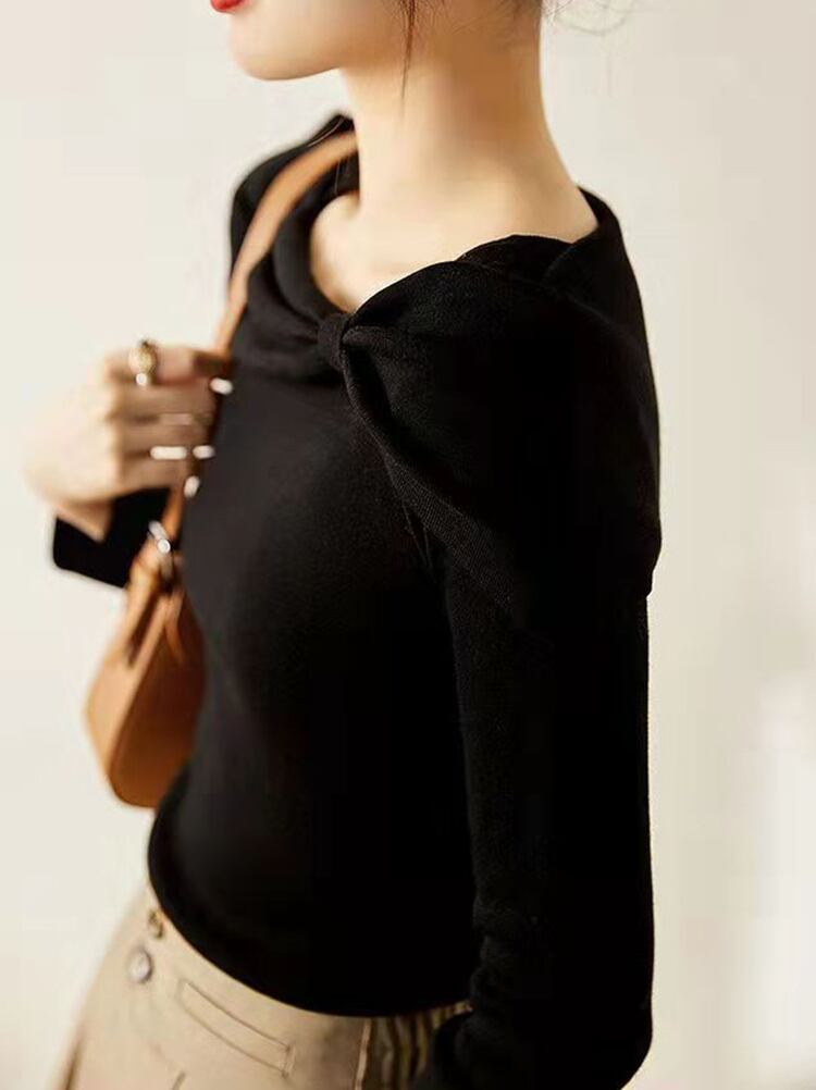 弓暖かいニットトッププル秋冬服スタイル厚いセーター長袖プルオーバージャージ ロング リボン オータム 秋物 ウィンター 冬物