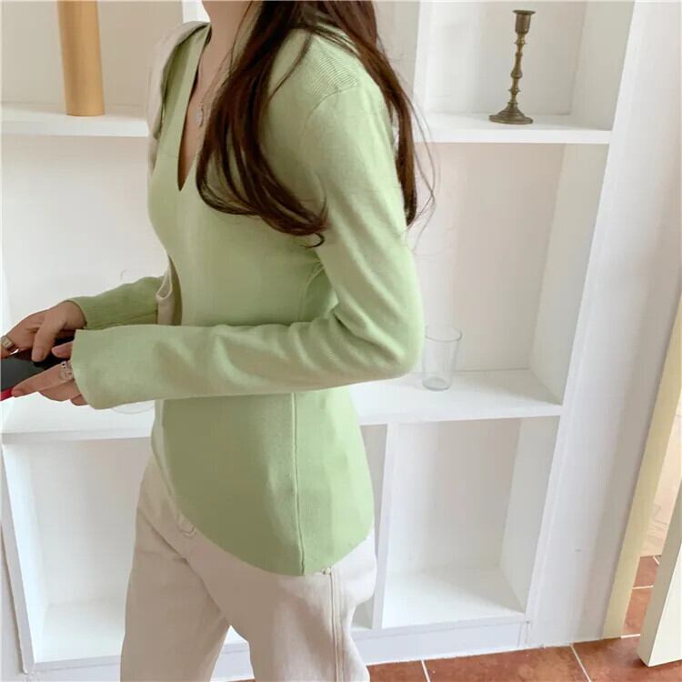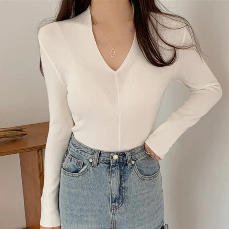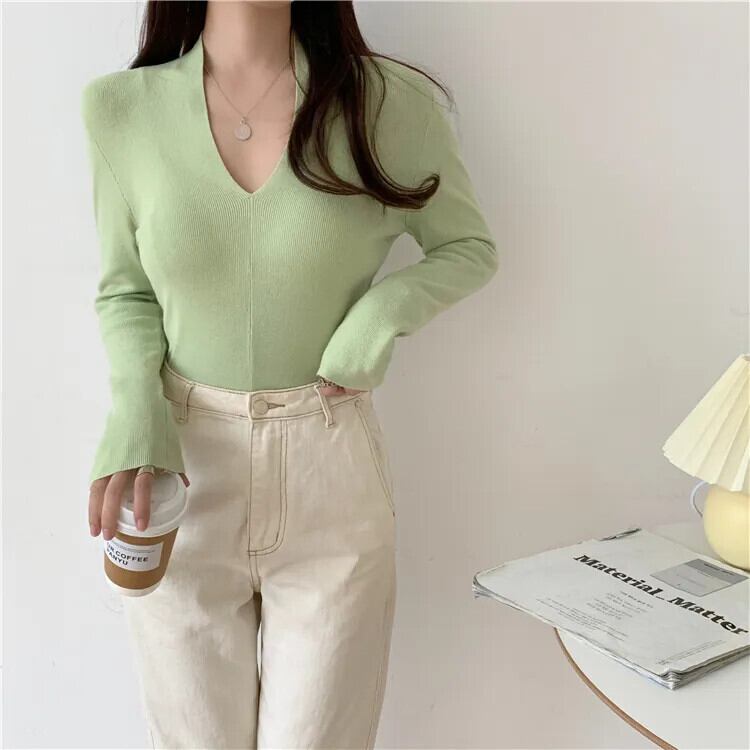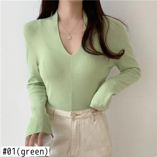 基本セーターセクシー V ネックプルオーバーニットトップス長袖スリムジャンパーセーター秋冬 ロング オータム 秋物 ウィンター 冬物 Vネック ソリッドカラー
