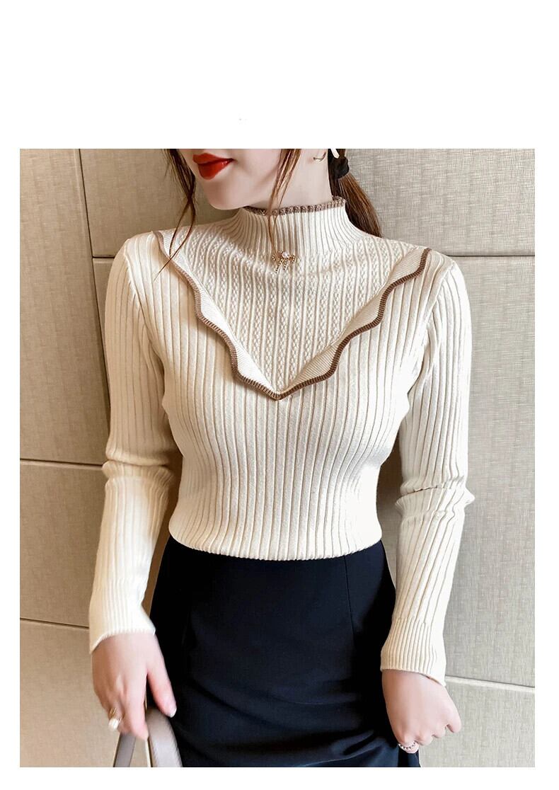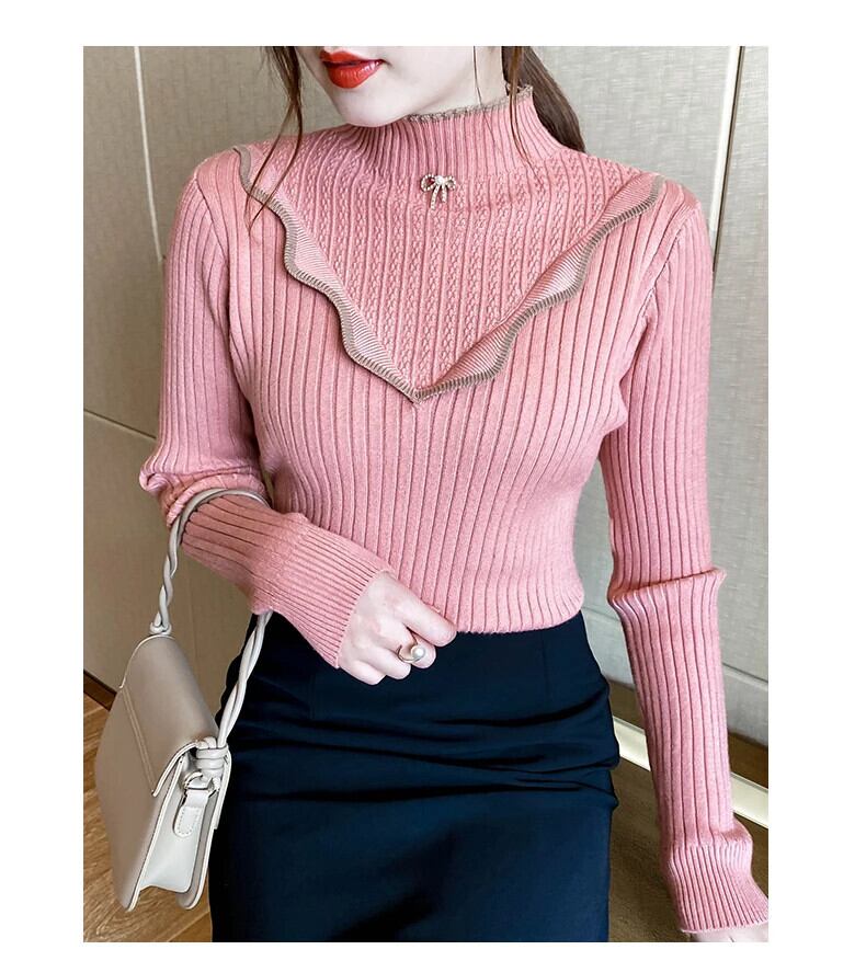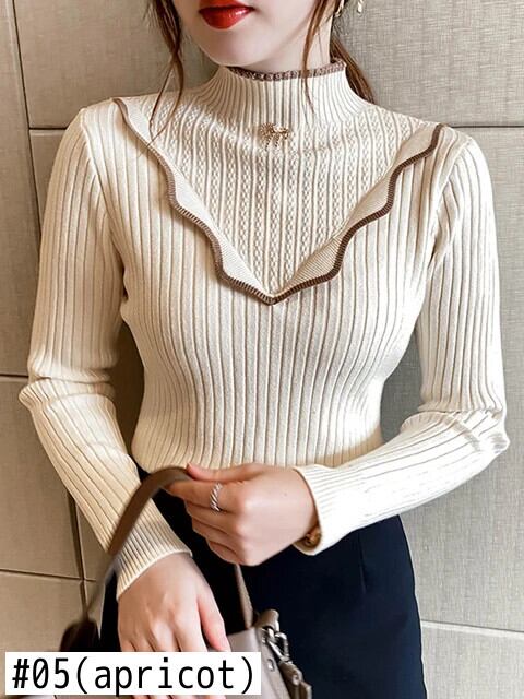 半襟プルオーバーセーター秋冬長袖ジャンパーニットボトムトップス ロング オータム 秋物 ウィンター 冬物