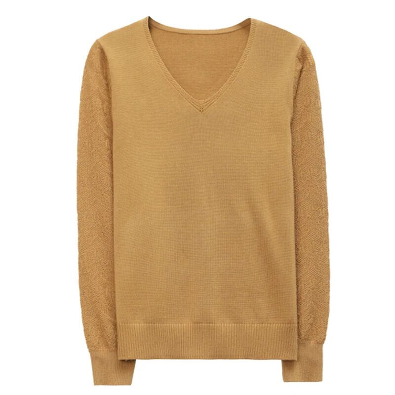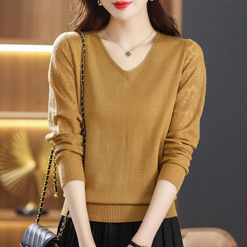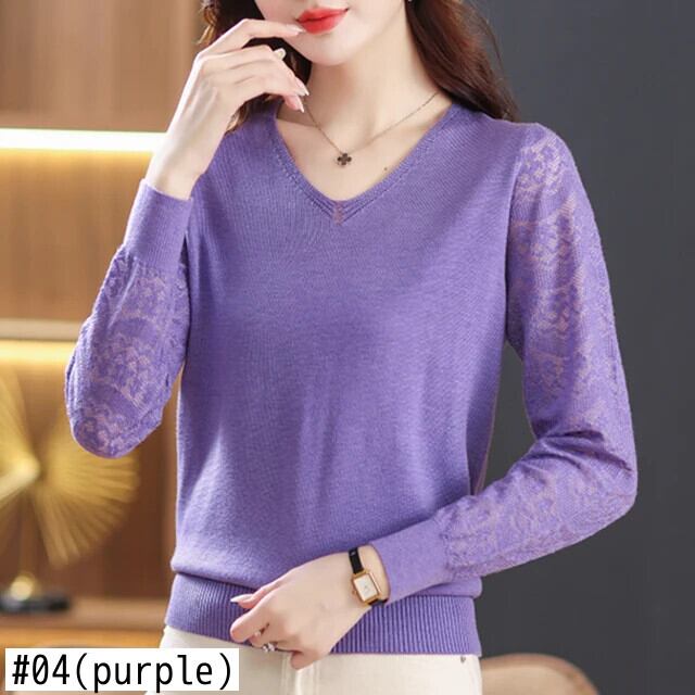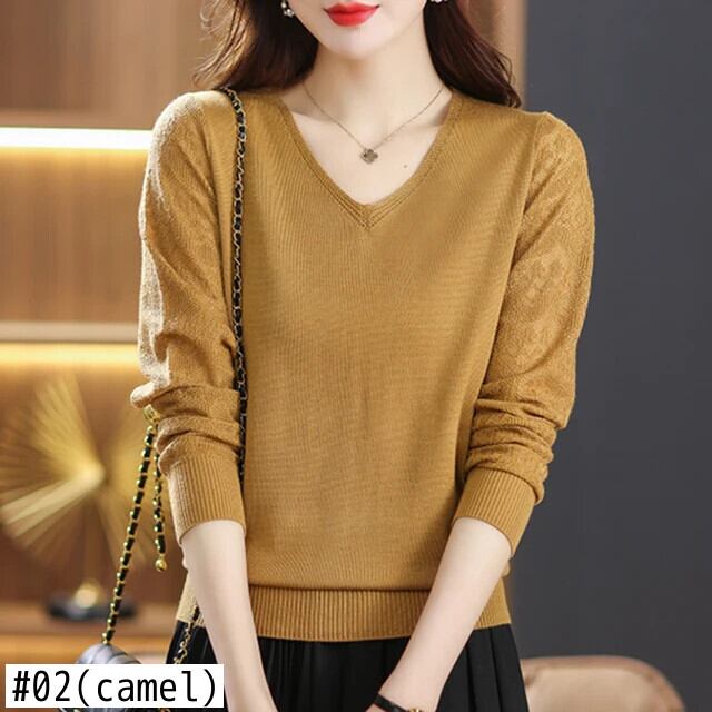 セーターデモーダ秋冬ルーズプルオーバーセーターパッチワーク長袖 V ネックニットトップス ロング オータム 秋物 ウィンター 冬物 Vネック