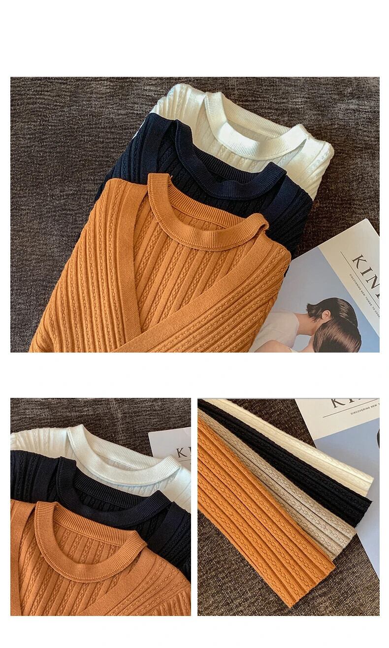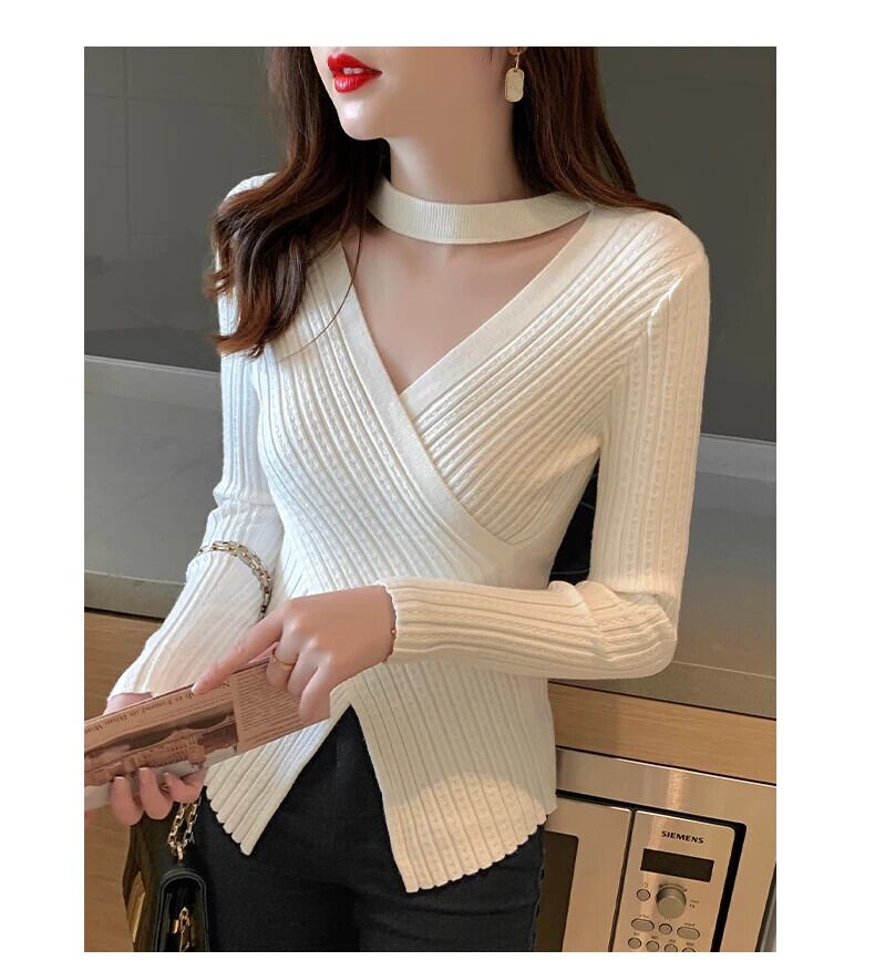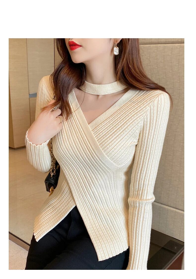 秋冬セクシー V ネックジャージ長袖プルオーバーセーター不規則スリムアウトニットトップス ロング オータム 秋物 ウィンター 冬物 Vネック
