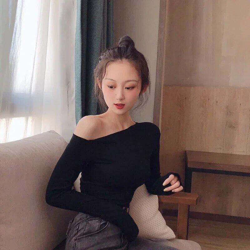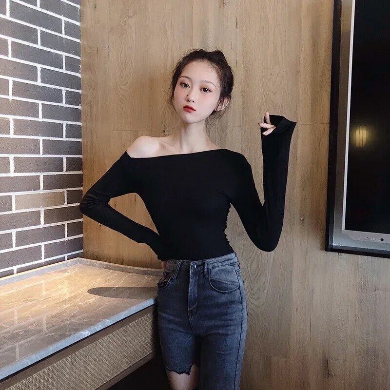 秋 Tシャツオフショルダーセクシー Tシャツ春黒長袖スリム Tシャツスタイルレディース ロング ブラック スプリング 春物 オータム 秋物
