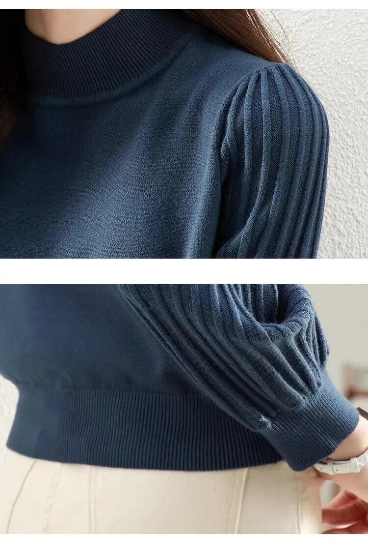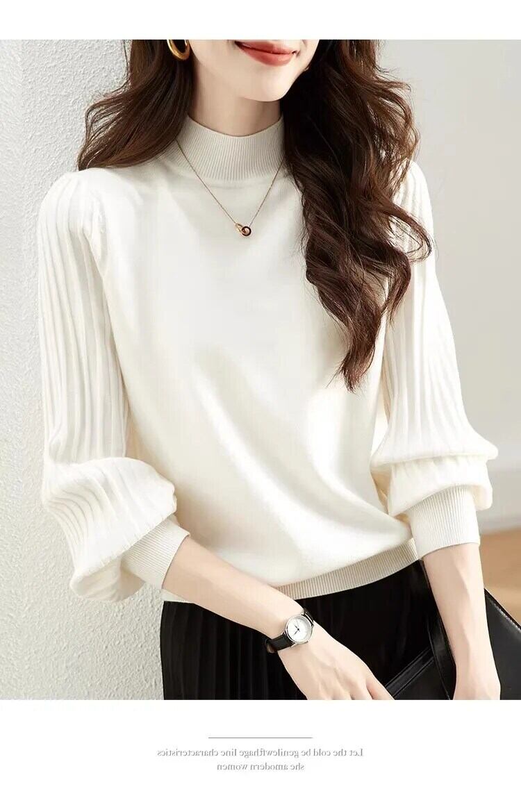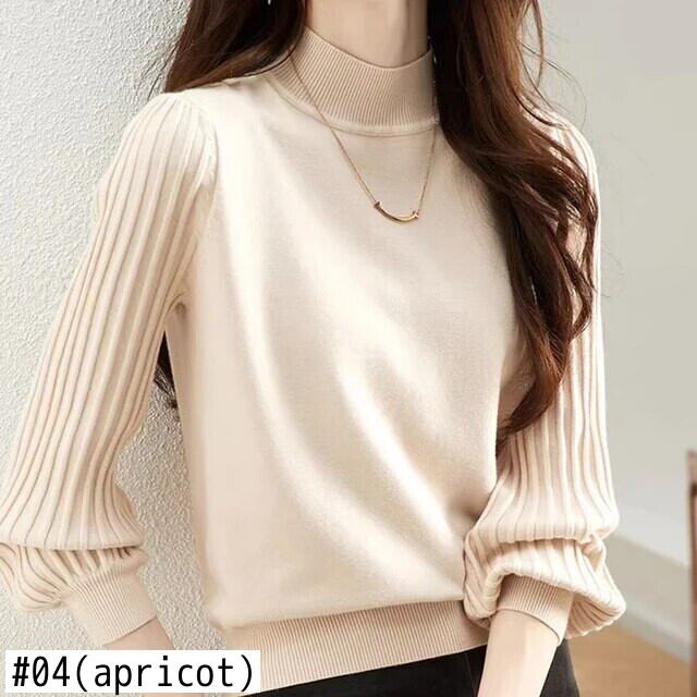 秋冬半襟白セーターレディース暖かい基本プルオーバー長袖ニットトップス ロング ホワイト オータム 秋物 ウィンター 冬物