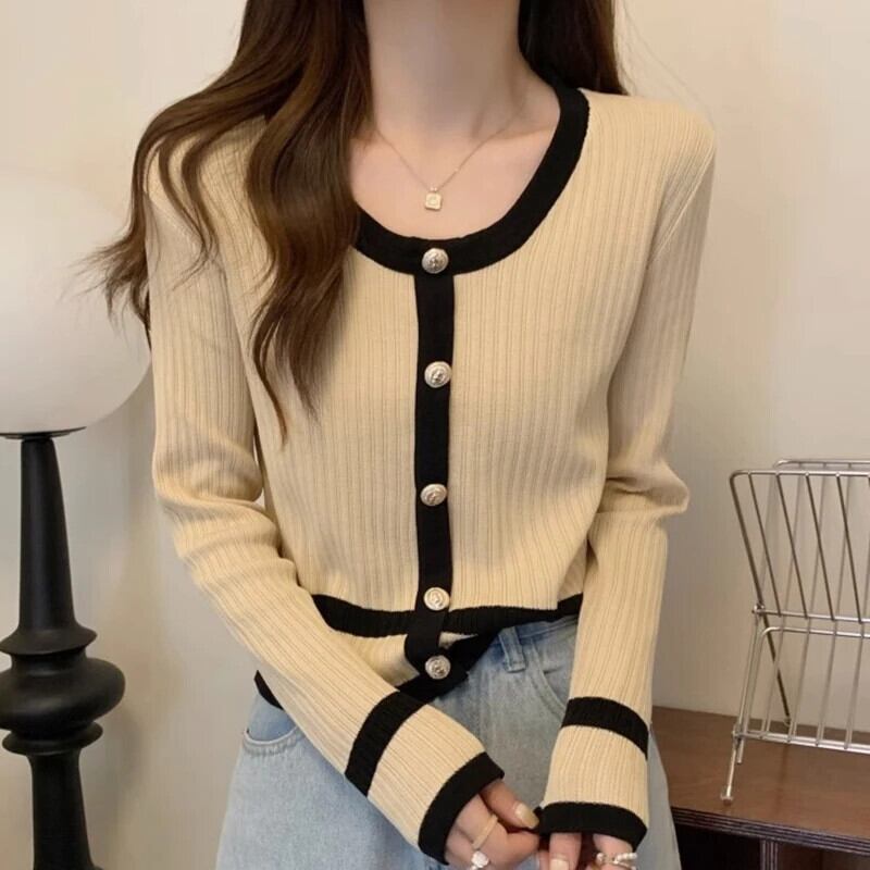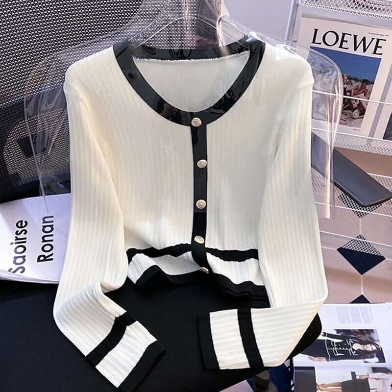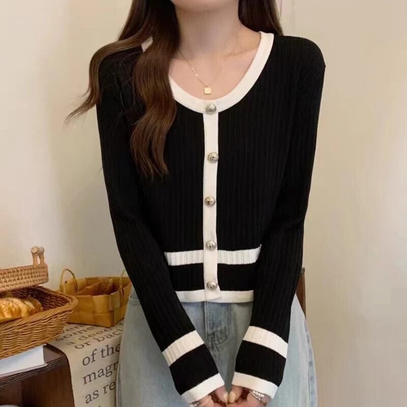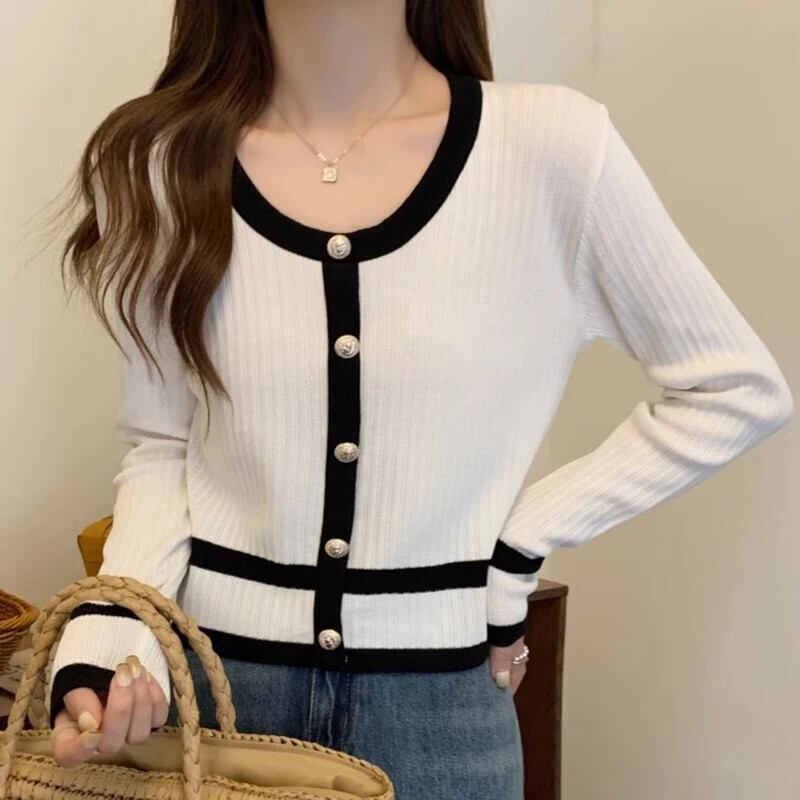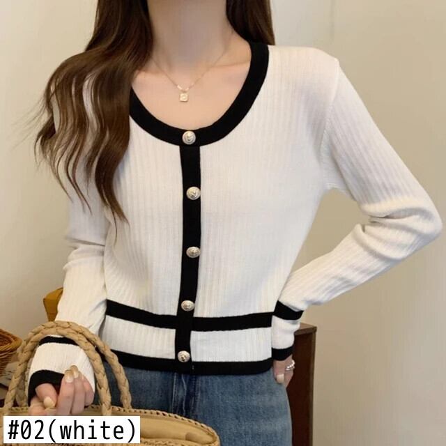 スタイルレディース秋冬 O ネックセーター長袖ニットクロップトップ白ボタンプルオーバープル ロング ホワイト オータム 秋物 ウィンター 冬物 Oネック