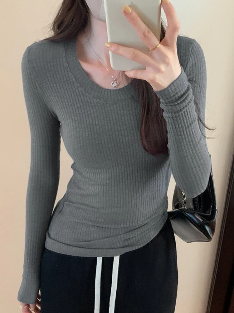 スキニー Tシャツ春秋 Tシャツ O ネック長袖スリムトップス Tシャツ ロング スプリング 春物 オータム 秋物 Oネック