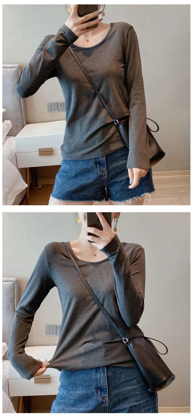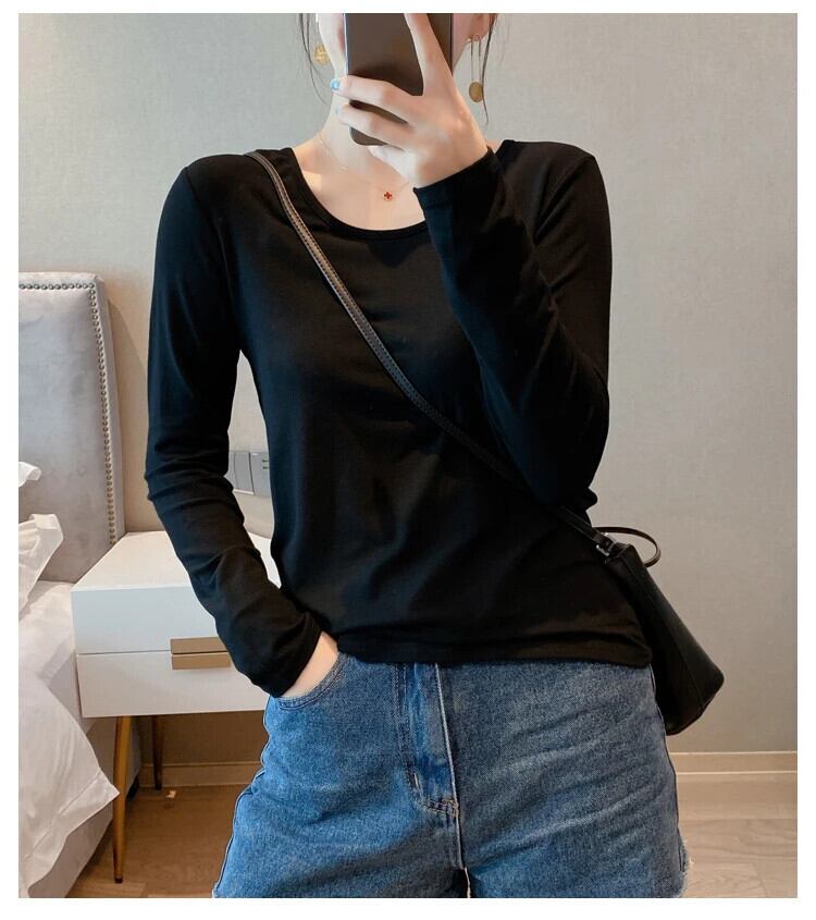Camiseta コットン Tシャツ春秋 Tシャツ長袖トップ基本スリム O ネック Tシャツスタイル ロング スプリング 春物 オータム 秋物 Oネック