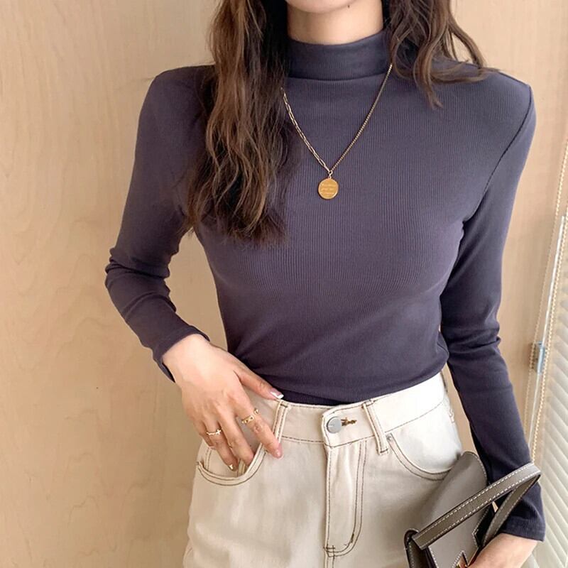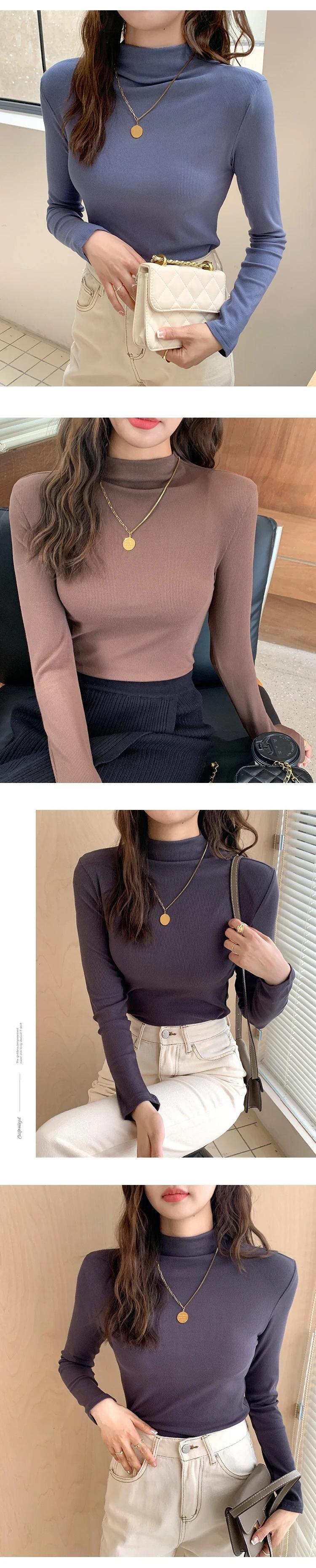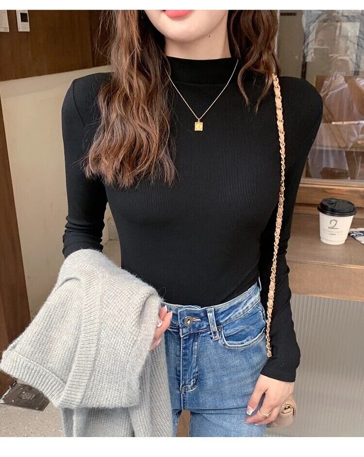 ハーフカラー Tシャツ長袖底入れ Tシャツ秋スリムトップスベーシック Tシャツ ロング オータム 秋物