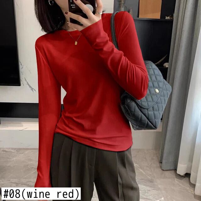 Camisetas デ春トップス O ネック Tシャツ長袖 Tシャツ秋レディース Tシャツ ロング スプリング 春物 オータム 秋物 Oネック