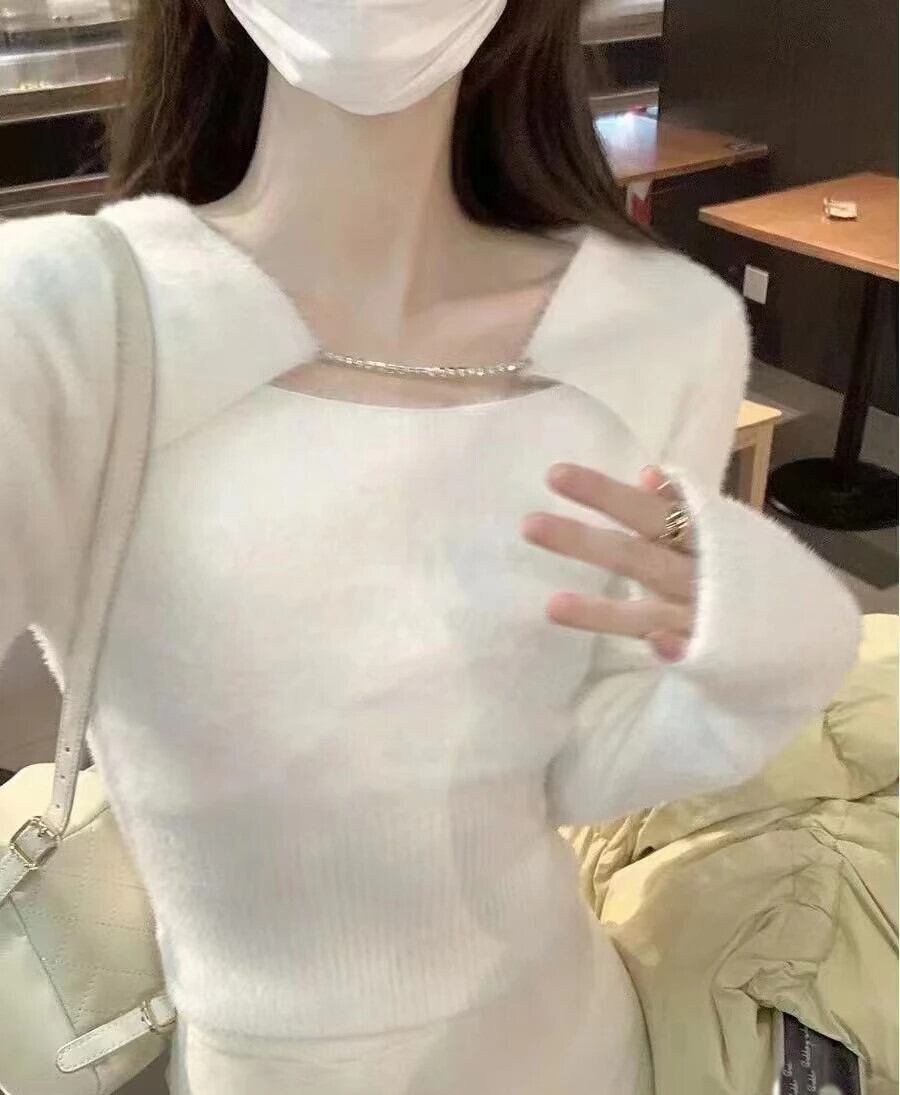 秋冬スタイルソフトプルオーバーセーター長袖セクシースリムニットクロップトップスセーターデ ロング オータム 秋物 ウィンター 冬物