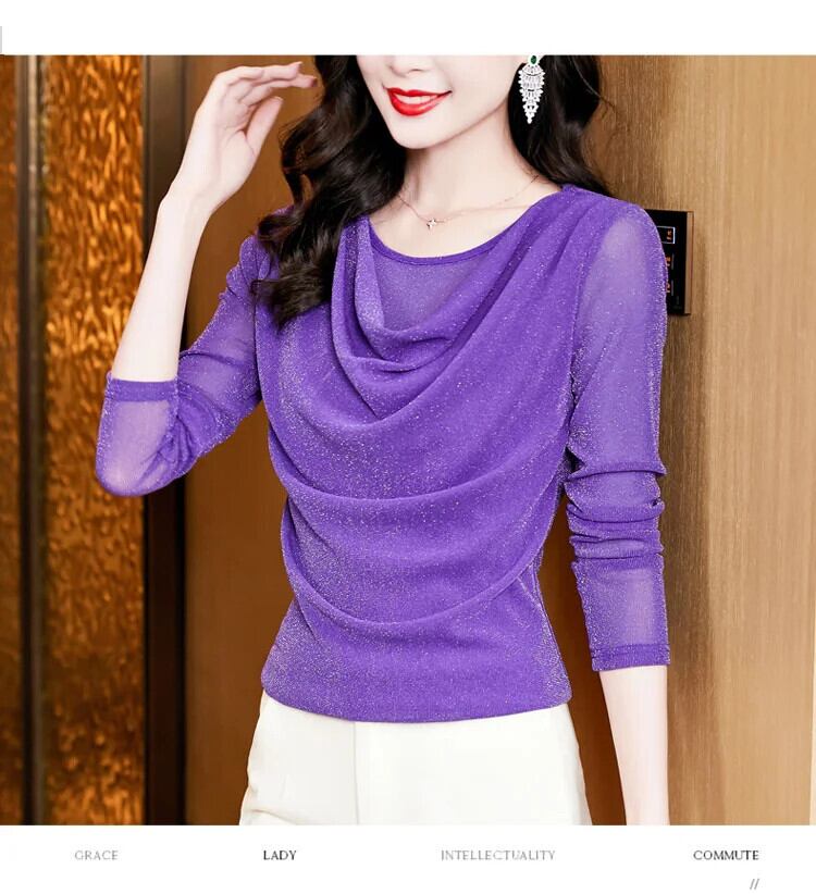 Ropa De 秋冬 Tシャツメッシュ長袖黒 Tシャツスリムトップス O ネック Tシャツ ロング ブラック オータム 秋物 ウィンター 冬物 Oネック