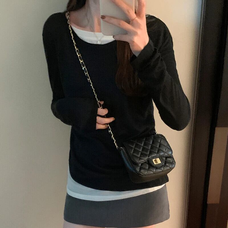 ルーズフェイク 2 Tシャツレディース長袖スタイルトップス春秋 2024 Tシャツデ ロング スプリング 春物 オータム 秋物