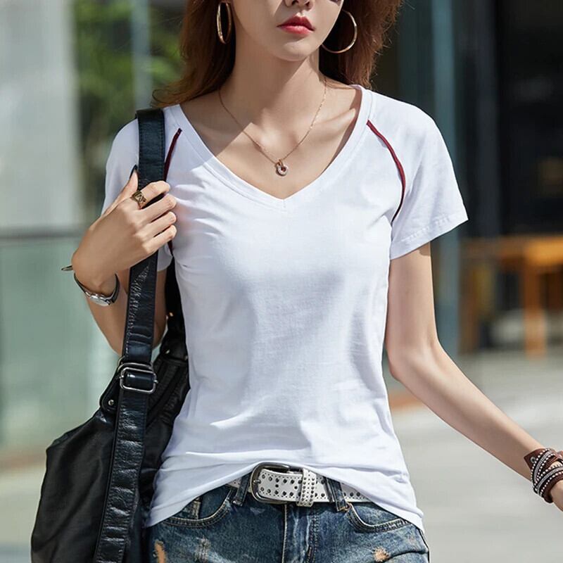 半袖 Tシャツ 2024 春夏 Tシャツ V ネック白 Tシャツスタイルスリムトップス Camisetas デ ショート ホワイト ハーフスリーブ スプリング 春物 サマー 夏物 Vネック