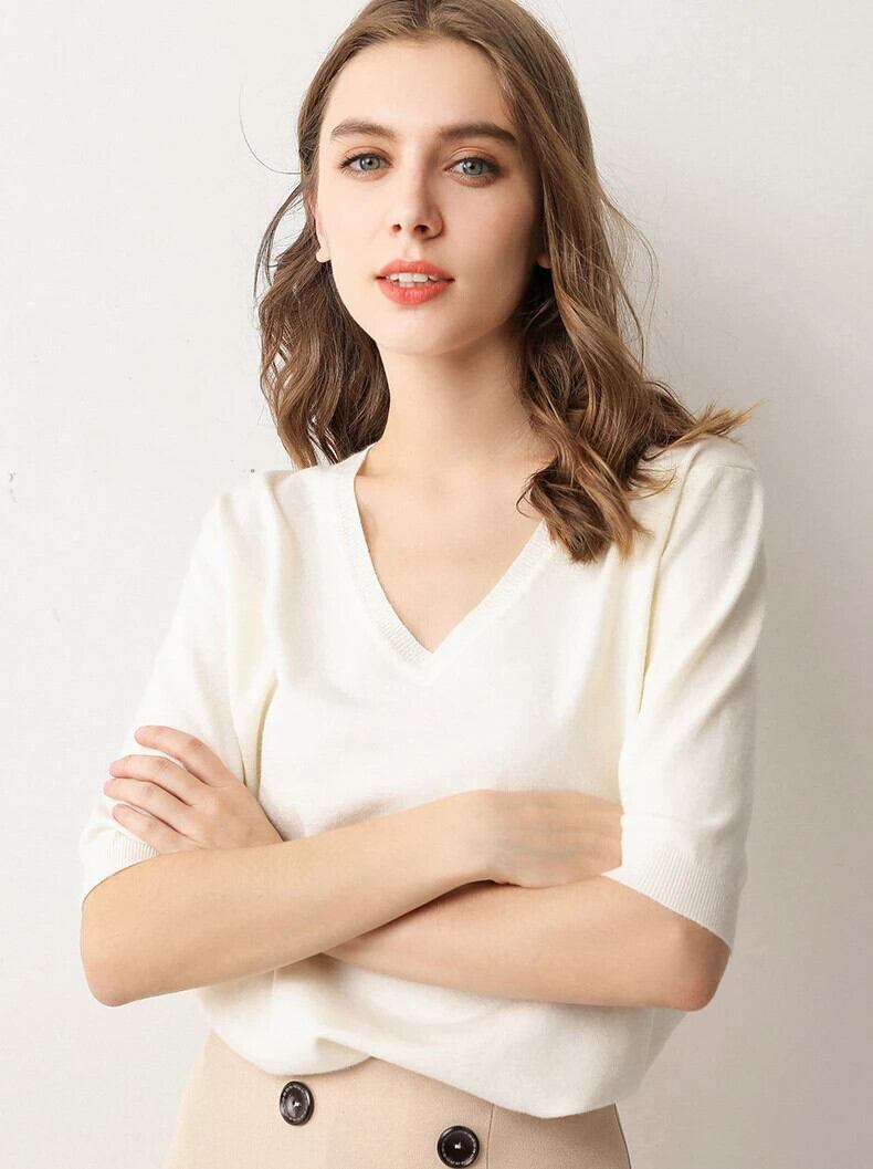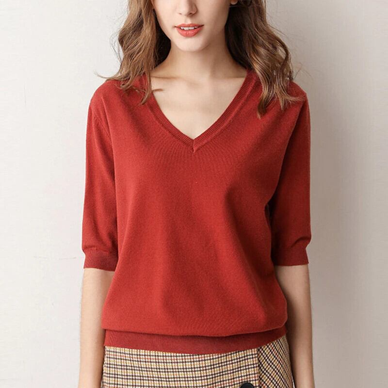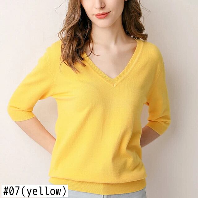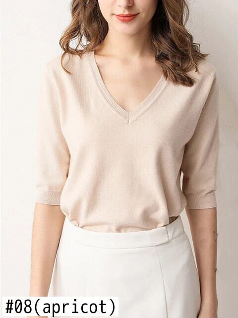 基本 Tシャツニットトップス半袖 V ネックルーズ Tシャツ春夏 Tシャツ ショート ハーフスリーブ スプリング 春物 サマー 夏物 Vネック ソリッドカラー