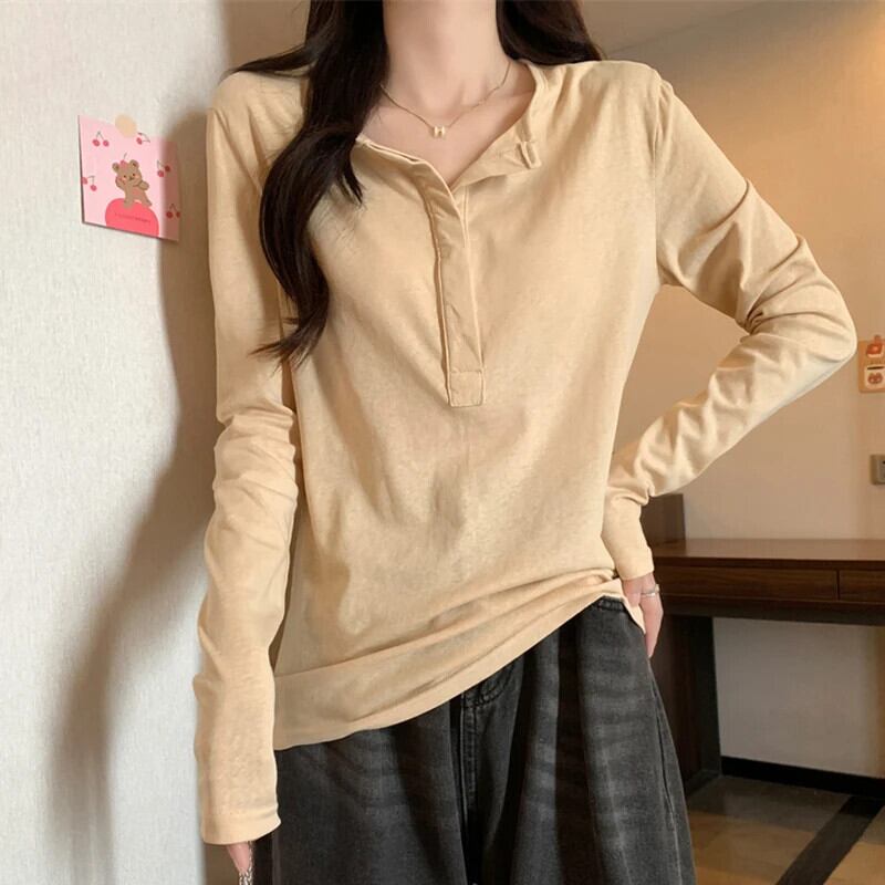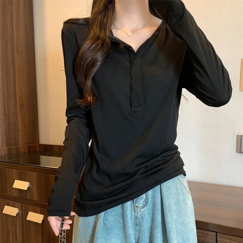 長袖 Tシャツ春秋ルーズ V ネック Tシャツ白黒トップス Ropa デ ロング ホワイト ブラック スプリング 春物 オータム 秋物 Vネック